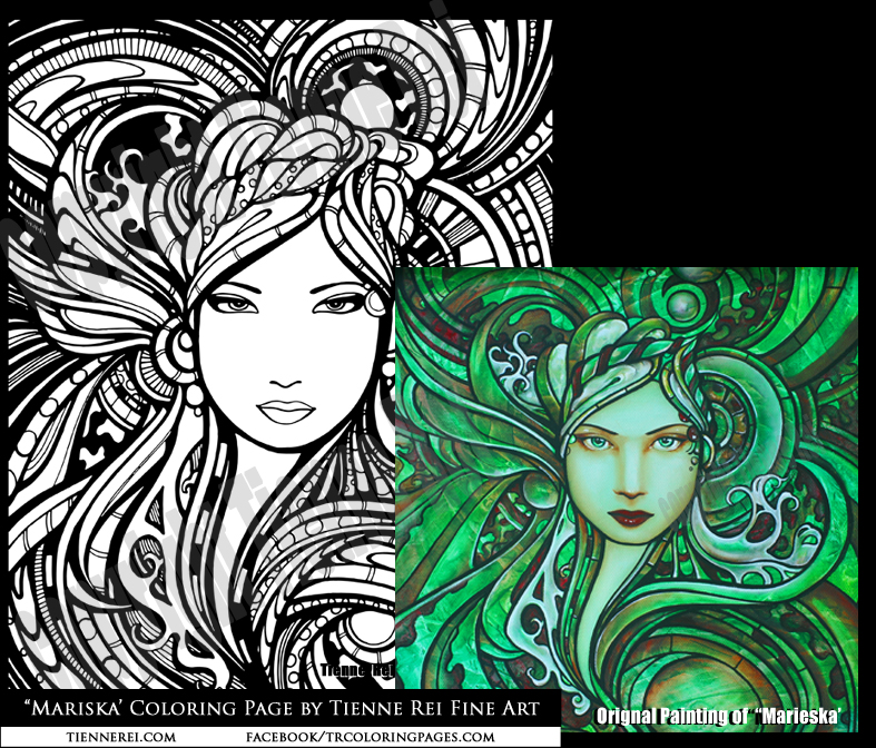 Coloring Page created from original oil painting entitled “Marieska” by Tienne Rei