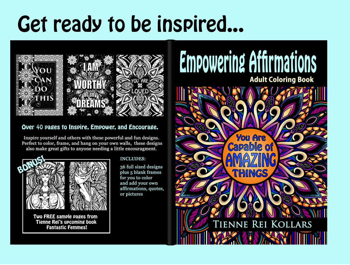 Introducing Tienne Rei’s first coloring book “Empowering Affirmations”! Now available on Amazon.com and through select retailers. Includes over 40 uplifting designs!